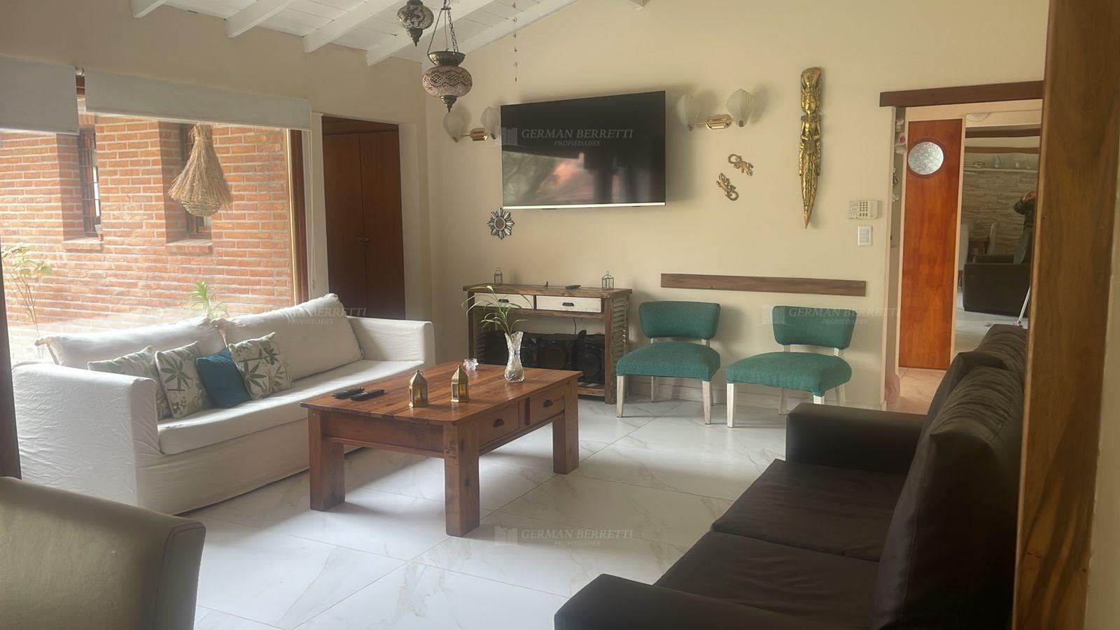 ALQUILER TEMPORARIO VERANO 2026 HERMOSA CASA EN ZONA CENTRO DE PINAMAR CON PISCINA. Al ingreso nos encontramos con el living con aire acondicionado super luminoso con un ventanal con vista al parque, luego nos encontramos con el comedor, tambien super luminoso... Luego pasamos a la cocina muy completa con bajos mesadas, alacena, cocina de acero inoxidable, heladera moderna, lavarropas, microondas, lavavajillas, cava de 28 vinos,mesa y sillas desayunadora. Luego nos encontramos con las habitaciones ambas con ventiladores de techo: 2 con camas de 1 plaza (2 en c/u) y 1 baño completo. La habitacion principal en suite con baño completo y aire acondicionado. Cuenta con dependencia de servicio con baño. En el exterior tenemos un ampio parque, un hermoso quincho, con horno a leña, con heladera, ideal para asados de verano. Esta hermosa propiedad tambien tiene piscina de 7x3 Garaje para autos. La casa cuenta con Alarma, rejas y esta cercada, tiene porton en la entrada. Las ventanas son de doble vidrio. Wifi La ubicacion: a pasos del centro y cerca del mar para poder disfrutar el verano. VALORES Y DISPONIBILIDAD: DICIEMBRE DISPONIBLE DESDE EL 23/12 AL 08/01 ENERO DISPONIBLE DESDE EL 15/01 AL 31/01 FEBRERO: CONSULTE DISPONIBILIDAD. CAPACIDAD MAXIMA 8 PERSONAS. CONDICIONES DE ALQUILER: Comisión inmobiliaria 10% + IVA (NO se encuentra incluido en el valor publicado) * Limpieza de egreso: NO se encuentra incluido en el valor publicado y se abona a la firma del contrato. * Depósito en garantía: 20% del valor de alquiler, Se abona a la firma del contrato. * La RESERVA se confirma abonando el 50%. El saldo restante se abona con la firma del contrato. *No se incluye en el alquiler: ROPA BLANCA (sábanas y toallas). * No se alquila a un grupo de jóvenes! * EL VALOR PUBLICADO ES SIMBOLICO, CONSULTE DISPONIBILIDAD Y VALOR PARA LA FECHA QUE SOLICITA.