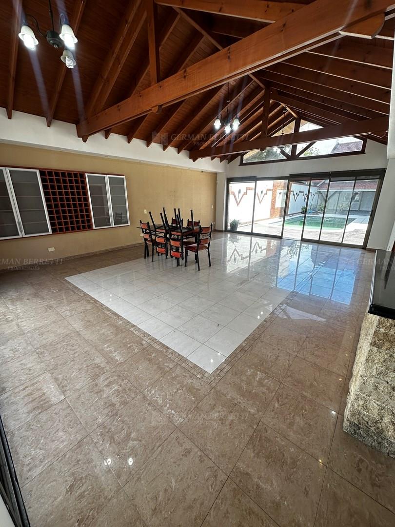 SE VENDE HERMOSA CASA DE 5 AMBIENTES CON GRAN QUINCHO Y PISCINA CLIMATIZADA. APTA A CRÉDITO. La casa se encuentra situada sobre un lote en su frente 8,66 por 55 en su fondo. Amplio jardín al frente, living y comedor, baño de recepción, cocina comedor con isla, lavadero cubierto. En PA: 4 dormitorios el principal en suite con vestidor e hidromasaje con balcón al frente. Patio cubierto, fondo libre y piscina climatizada. Quincho con parrilla baño y dormitorio de servicio. MUY BUENA. SE ESCUCHAN OFERTAS. SE TOMA PROPIEDAD EN MENOR VALOR.